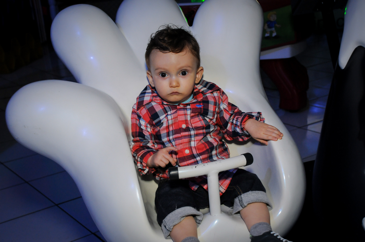 aniversariante brinca com o cavalinho inflável no Buffet Fábrica da Alegria, Morumbi, São Paulo, SP